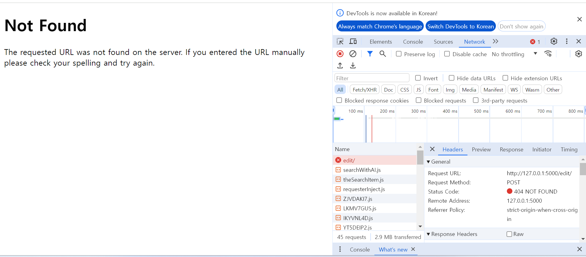 3. method를 'DELETE'로 지정했는데, '허용되지 않은 메소드' 오류 발생